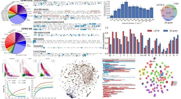 Recurrent Neural Networks (RNNs), and specifically a variant with Long Short-Term Memory (LSTM), are enjoying renewed interest as a result of successful applications in a wide range of machine learning problems that involve sequential data. However, while LSTMs provide exceptional results in practice, the source of their performance and their limitations remain rather poorly understood. Using character-level language models as an interpretable testbed, we aim to bridge this gap by providing a comprehensive analysis of their representations, predictions and error types. In particular, our experiments reveal the existence of interpretable cells that keep track of long-range dependencies such as line lengths, quotes and brackets. Moreover, an extensive analysis with finite horizon n-gram models suggest that these dependencies are actively discovered and utilized by the networks. Finally, we provide detailed error analysis that suggests areas for further study.
