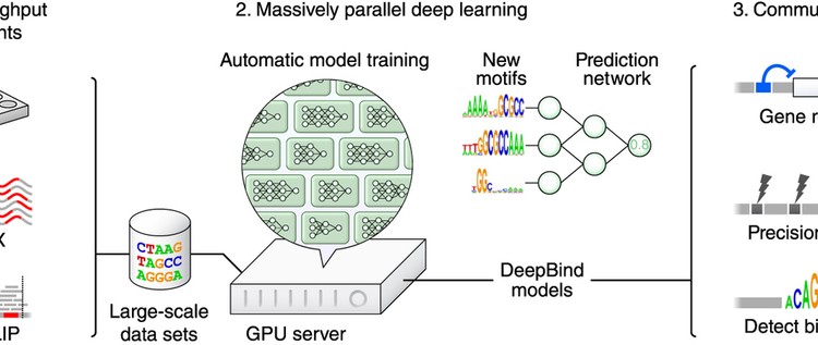 Knowing the sequence specificities of DNA- and RNA-binding proteins is essential for developing models of the regulatory processes in biological systems and for identifying causal disease variants. Here we show that sequence specificities can be ascertained from experimental data with ‘deep learning’ techniques, which offer a scalable, flexible and unified computational approach for pattern discovery. Using a diverse array of experimental data and evaluation metrics, we find that deep learning outperforms other state-of-the-art methods, even when training on in vitro data and testing on in vivo data. We call this approach DeepBind and have built a stand-alone software tool that is fully automatic and handles millions of sequences per experiment. Specificities determined by DeepBind are readily visualized as a weighted ensemble of position weight matrices or as a ‘mutation map’ that indicates how variations affect binding within a specific sequence.
