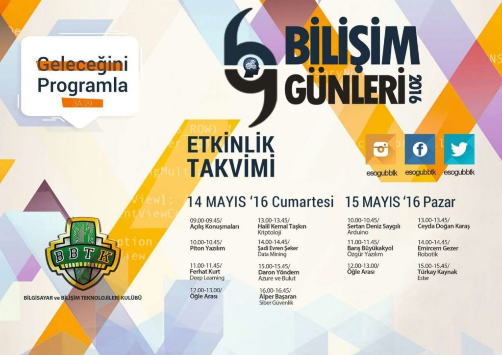 Eskişehir Osmangazi Üniversitesi Bilgisayar ve Bilişim Teknolojileri Kulübü tarafından düzenlenen Ogü Bilişim Günleri 14-15 Mayıs 2016 tarihlerinde icra edilecektir. Söz konusu etkinlik kapsamında 14 Mayıs 2016 günü 11.00-11.45 saatleri arasında “Derin Öğrenme” konulu sunum gerçekleştireceğim. Detaylı bilgi için: http://www.bbtk.ogu.edu.tr