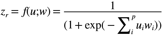 Daha biçimsel olarak, r’ninci katmandaki nöron p = r + 1 girişe sahiptir. Lojistik aktivasyon fonksiyonu için, bu nöronun çıkışı olan zr aşağıdaki gibi yazılabilir,