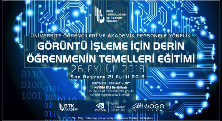 Open Zeka, NVIDIA ve BTK Akademi işbirliği ile Üniversite Öğrencileri ve Akademik Personele Yönelik “Görüntü İşleme İçin Derin Öğrenmenin Temelleri Eğitimi26 Eylül 2018 günü BTK Merkez Bina yerleşkesinde gerçekleştirilecektir.