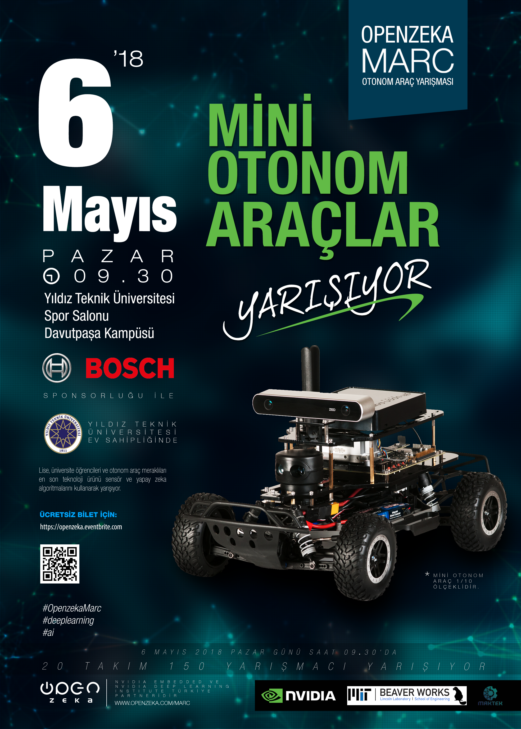 OpenZeka MARC, yapay zeka algoritmalarının kullanıldığı Lise ve Üniversite öğrencileri ile Şirket/Girişimci çalışanlarının katılım sağlayabileceği mini otonom araç yarışmasıdır.