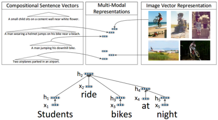 Our model learns to associate images and sentences in a common We use a Recursive Neural Network to compute representation for sentences and a Convolutional Neural Network for images. We then learn a model that associates images and sentences through a structured, max-margin objective.